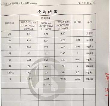 泰州市龍溝電鍍科技有限公司2021年度土壤和地下水檢測數(shù)據(jù)公示如下: